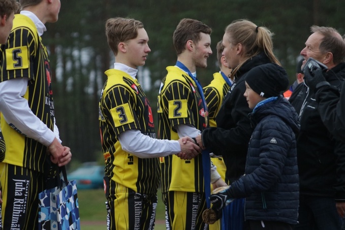 Itä-länsiedustajia: miesten lännen joukkueen ykköspalkittu Perttu Ruuska (ViVe / HalTo), A-poikien lännen edustaja Arttu Ruuska (ViVe / HalTo), B-poikien kentän parhaana palkittu Otto Kauppinen (VePe / HalTo) ja B-poikien lännen edustaja Elmeri Anttila (HalTo B-p/ViVe).