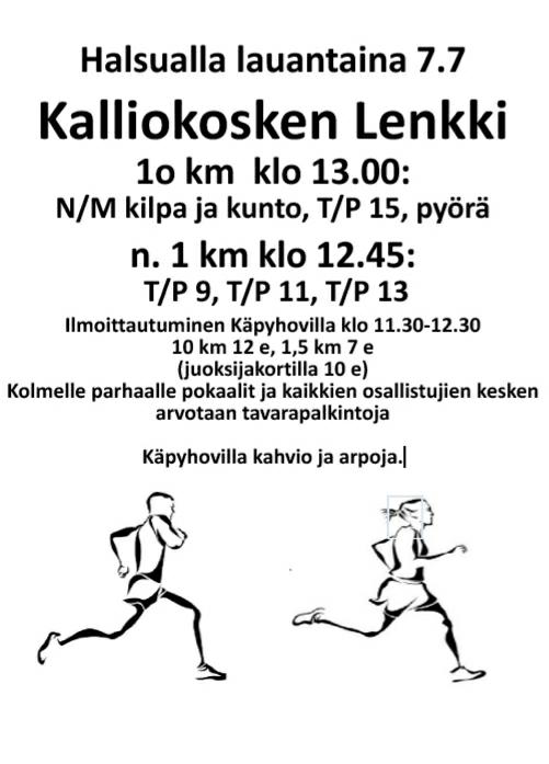 Perinteinen Kalliokosken Lenkki juostiin aurinkoisessa kesäkelissä lauantaina 7.7.2018. Kilpailijoita ja yleisöä oli paikalla mukavasti ja kisatunnelma oli kohdillaan.